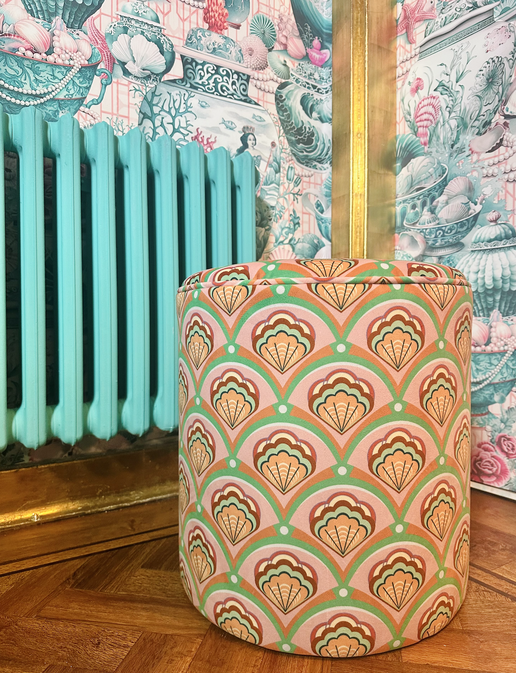 Perfect to use as a Dressing Table Stool or double up and rest your feet on this super soft velvet. Edged with a piping detail the Dressing Table Pouffe is very sturdy. Pictured is the Deco Sea Shell in Strawberry Ice Velvet.
