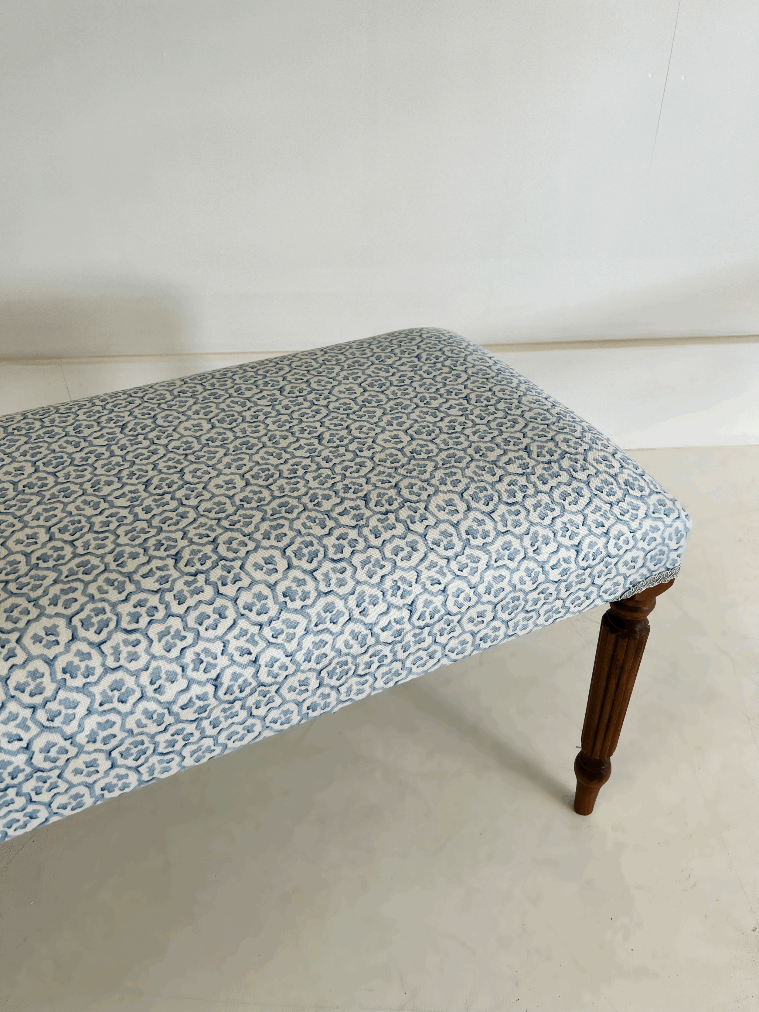 A gorgeous pouffe that can double up as a dressing table stool created in Poodle and Blonde Big Pansy in Forget Me Notes in Blossom.